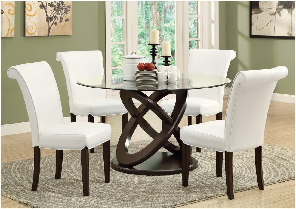 1. BEST SELLER 48 INCH ROUND GLASS DINING TABLE: Steve-Silver-Amalie-Round-Dining