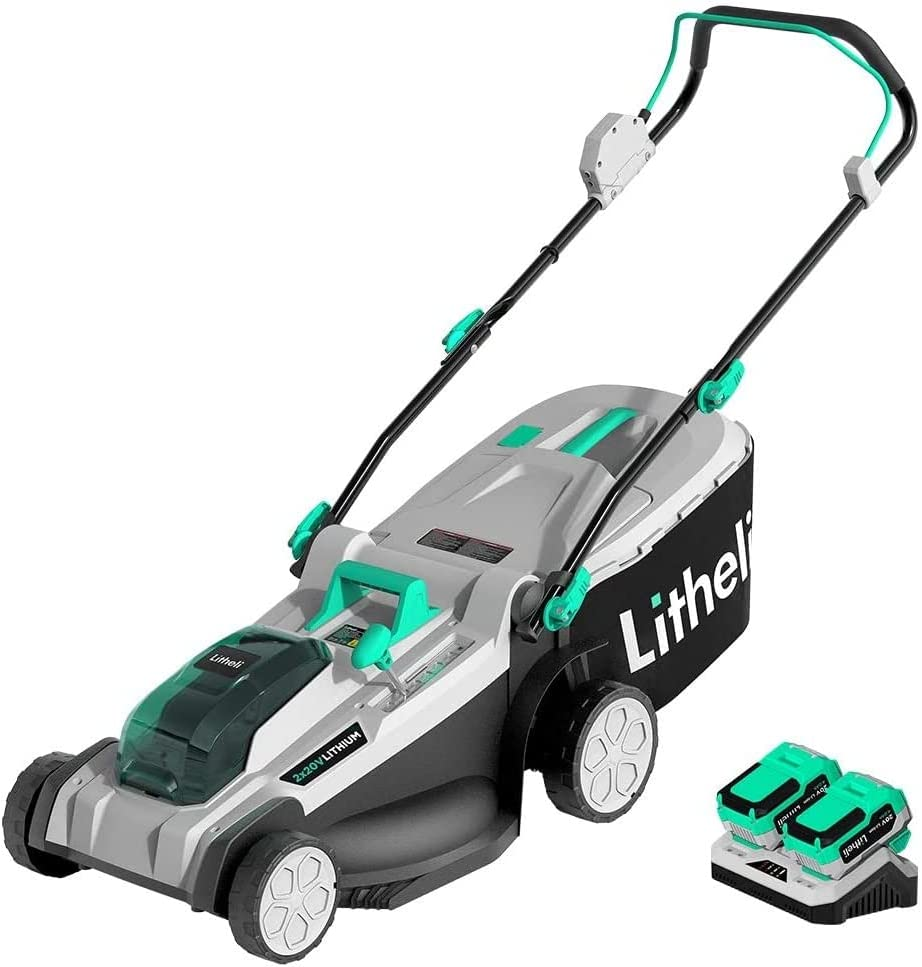 BEST OVERALL BAGGING LAWN MOWER: Lithe Li Cordless Lawn Mower 17 Inch, 2*20V 4.0Ah Battery Lawn Mowers