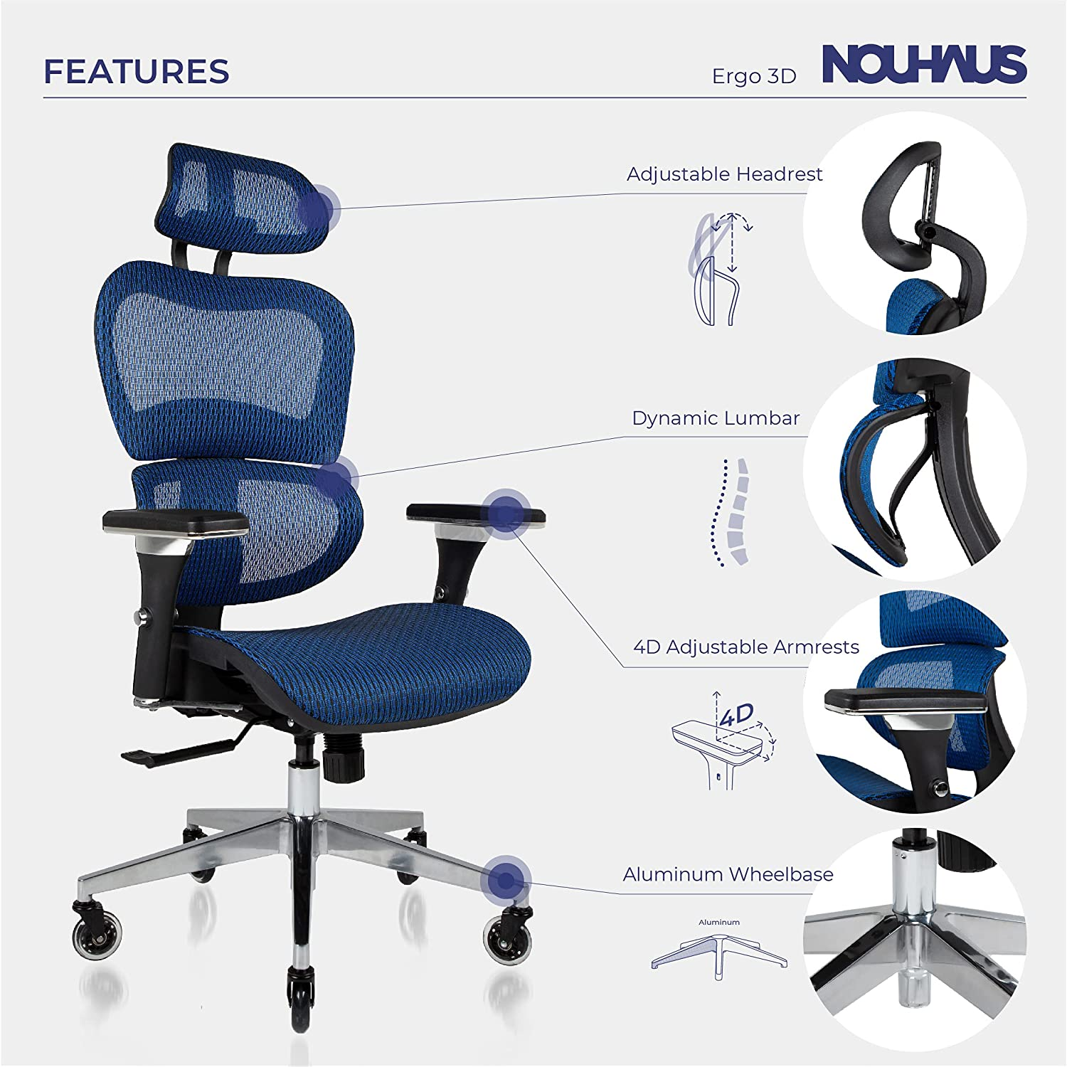 3. TOP FEEDBACK ERGONOMIC OFFICE CHAIR UNDER $500: NOUHAUS Ergo3D Ergonomic Office Chair