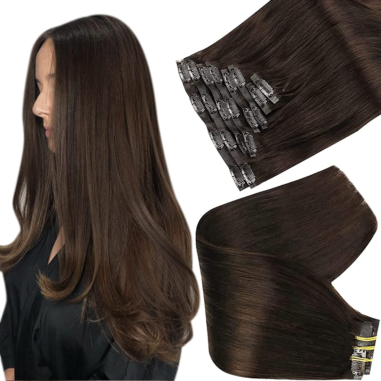 GOO GOO Dark Brown Hair Extensions Clip in Human Hair Straight Thick 7pcs 120g Human Hair Extensions Remy Hair Extensions 16 Inch