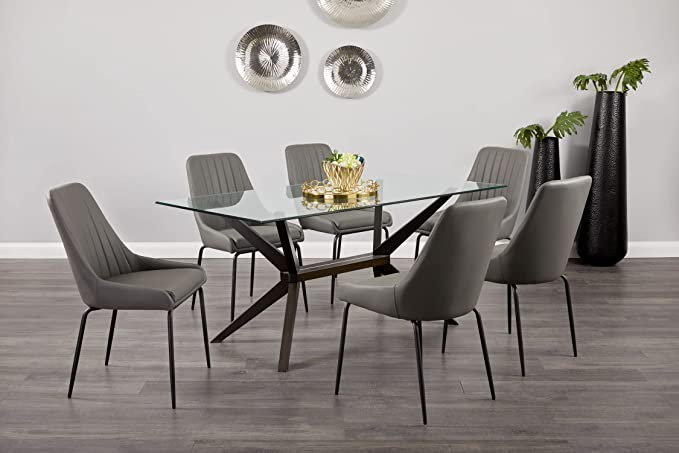 - TOP VALUE METAL AND GLASS DINING TABLE: Contemporary Glass Dining Table for 6 People