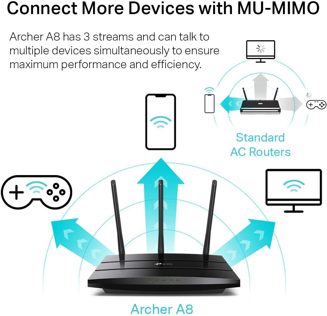 TP-Link AC1900 Smart WiFi Router (Archer A8) -High Speed MU-MIMO Wireless Router, Dual Band Router for Wireless Internet, Gigabit, Supports Guest WiFi