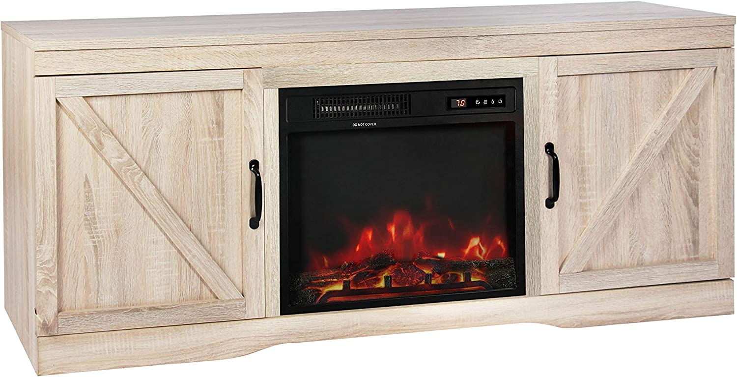 1. BEST OVERALL WHITE OAK TV STAND WITH FIREPLACE: Fireplace TV Stand with Barn Door