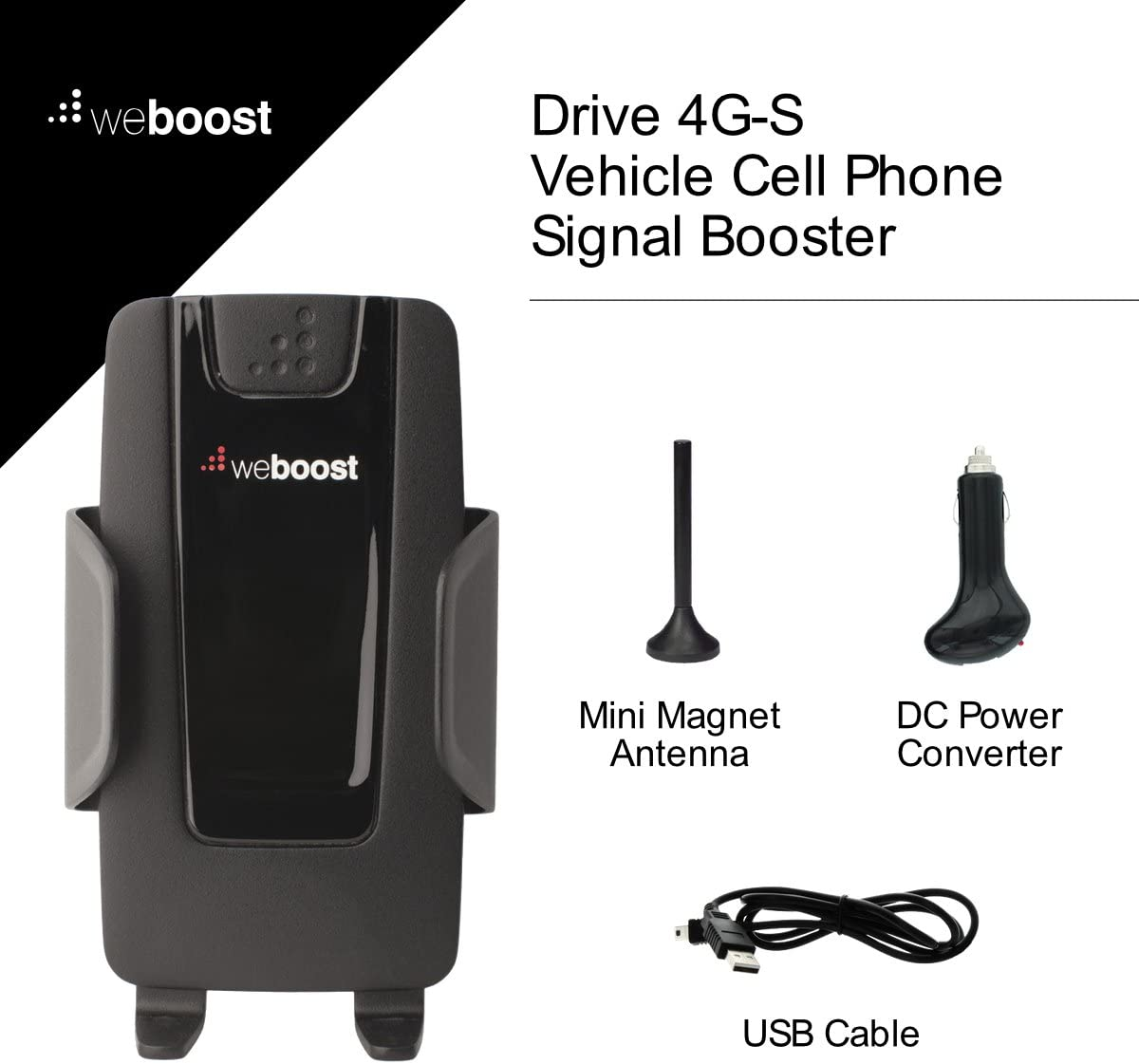The Drive 4G-S is the most economical Wilson electronics cell phone booster from weBoost. This 4G booster can improve 4G LTE and 3G signals for one person in a vehicle, truck, van, or RV by up to 32x. WeBoost's 4G-S supports all US and Canadian networks, including Verizon, AT&T, Sprint, T-Mobile, US Cellular, and Straight Talk.